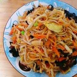 Stir-fry mung bean sprouts quickly over high heat, add shredded beans and fungus, and stir-fry over medium heat