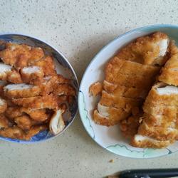 2. Coat the chicken breast first with starch, then with egg liquid, and finally with egg liquid Bread crumbs and fry in oil until golden brown.