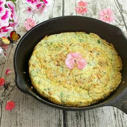 6. Heat an appropriate amount of oil in a small pan, pour the sophora flower batter into it, and evenly level the egg batter with a spoon,