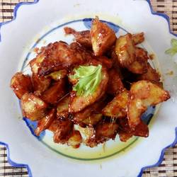 Mainly use low heat throughout the process.Don’t cut the potatoes into too big pieces, so that the frying time will be shorter.When loading the plate, brush a layer of oil on the bottom of the plate for easy cleaning