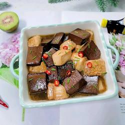 12.Put it into a container and garnish with chopped green onion and chili, a delicious and nutritious duck blood tofu It's finished.