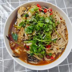 6.Add enoki mushrooms, continue to cook for 10 minutes, remove the juice, and sprinkle with coriander