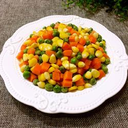 2. Peel, wash and dice the carrots, wash the corn kernels and peas and set aside