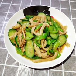 9.Pepper and cucumber are put into the pot one by one Stir-fry