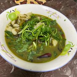6.After the pickled fish is cooked, take it out of the pan and sprinkle with minced coriander