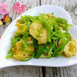 6.See pepper The silk becomes slightly soft, add a little salt, stir well, then add the eggs, stir well over high heat