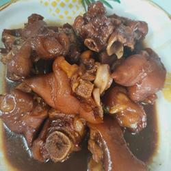 1. Blanch the pig's trotters in cold water and add ginger cooking wine2.Use rock sugar to stir-fry the sugar color, add the jujube red color to the pig's trotters