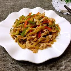 5. Pour an appropriate amount of oil into the pot and heat it up.Add the red pepper and green pepper., stir-fry mustard until cooked through