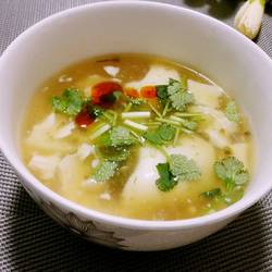 To make tofu puffs, you must use boxed tofu to make it softer and tender.Add the ingredients in the soup according to your preference, but leek flowers and winter vegetables must be added to make it delicious.These two are also made by my family.The soup can also be made with bones.For soup, put the tofu in a bowl, add chive flowers, winter vegetables, and sesame oil, and then pour the soup over it.It’s delicious!