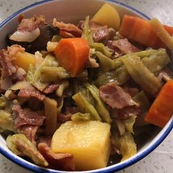 7.Add potatoes and carrots, blanched Beans, mushrooms, appropriate amount of water,