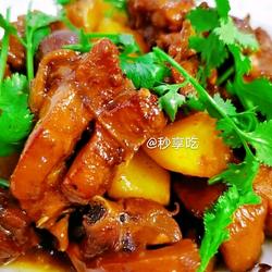 7. Garnish with some coriander, and your delicious chicken braised potatoes are ready!