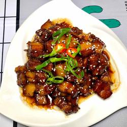 10. The braised pork is ready like this.Sprinkle some white sesame seeds and scallions on top to garnish it.It will look elegant and ceremonial.Haha, everyone must cook it well.Oh, it tastes really delicious.My husband praised me for making it so delicious