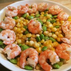 5. Stir-fry corn, green beans and shrimp together, add salt, MSG, and collect the juice.