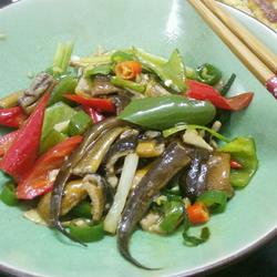 5.First fire Sauté the chili until fragrant and then stir-fry the eel