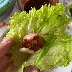 Lettuce leaves ( 10 pieces ) | Garlic sauce ( appropriate amount ) |