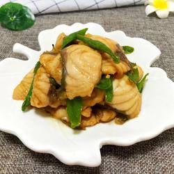 7. When the peppers are almost cooked, add the freshly fried fish fillets and stir-fry until the flavor is absorbed..