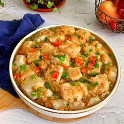 6. Put the pangasius fish pieces, then pour the sauce, sprinkle with chopped green onion and spicy millet.