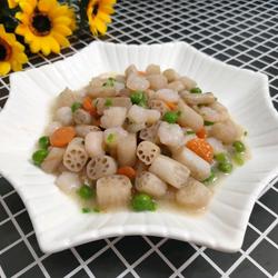 1. Prepare lotus root strips, marinated shrimps in advance, peas, carrots, Green onions