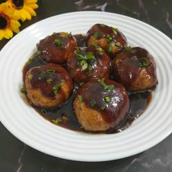 11.Open the oil pan, turn on low heat, add the meatballs, and fry until golden brown,
