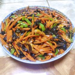 1.Put the prepared carrots, peppers, Fungus, cut into shreds, put on a plate and set aside