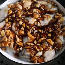 5. Drain the water from the vermicelli, spread it on a plate, and put oysters on top