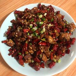 9. Serve on a plate and garnish with chopped green onion.The picture is of spicy chicken cooked twice.Put together, this picture of the finished product is a relatively dry diced chicken that was fried for the first time.It was shot without a filter.It looks pretty good and the taste is also liked by my family.