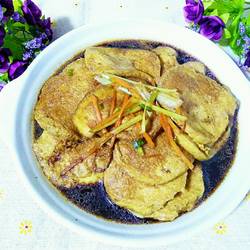 18. Pour the soup onto the vegetarian chicken.(Grandma will save the soup from the braised vegetarian chicken and give it to us with rice)