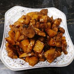 9.Add potato cubes, a little salt, and continue to simmer over medium heat for 20 minutes.If the color is light, you can add some dark soy sauce