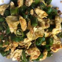 5.Heat the pan with oil, add the Hangzhou pepper and stir-fry
