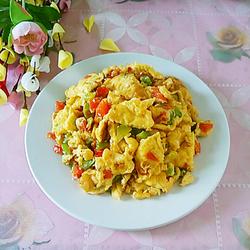 7. Stir-fry until the bell peppers are broken and the eggs are cooked.Sprinkle before serving.Add a small amount of white sesame seeds and stir-fry a few times.