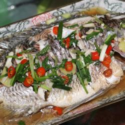 4. Rub salt on the fish body, soy sauce, steamed fish with soy sauce, marinate half of the onion, ginger and garlic Hours.Steam for 10 minutes and take out.