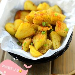 5.Fry the potatoes and sprinkle with appropriate amount of salt, chicken essence, pepper and a little chili powder
