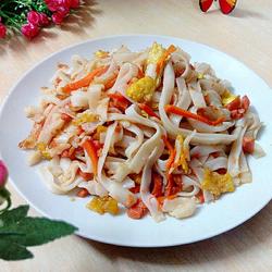 1.Ingredients: rice noodles, eggs, carrots, ham