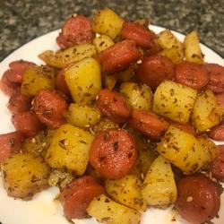 4. Fry the sausages, add potatoes, cumin, sesame seeds, salt and light soy sauce to taste