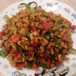 8.Add garnishes, add salt, oil and thirteen spices and stir-fry Fry until fragrant and sprinkle two drops of water