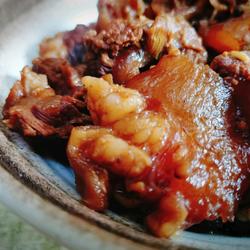 5. Take out the stewed meat from the pressure cooker and pour it into the iron pot.Reduce the juice over low heat and add salt according to your taste.When the soup becomes less, you can take it out of the pot and put it on a plate.Okay, let’s start thinking about using it.This fragrant smell is definitely not inferior to that of a big hotel~
