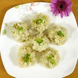 12.The glutinous rice balls have been steamed Okay, put it on a plate and sprinkle with chopped green onion and carrots and serve