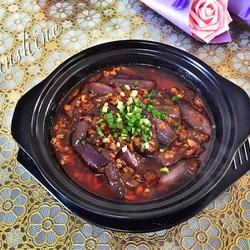 10.Pour the sauteed minced meat into the casserole containing the eggplant strips.Heat and bring to a boil.