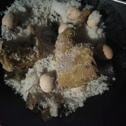 6.Okay, it’s time to take it out of the pot.Use a brush to sweep the salt clean and chop it into pieces