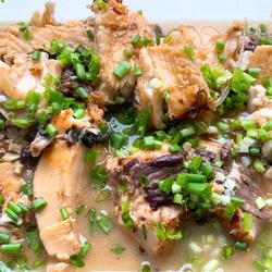 5. Reduce the juice over high heat until thick, add green onions and serve on a plate.