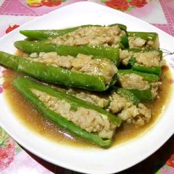 6.Break the peppers with your hands and stuff them into the marinated meat filling