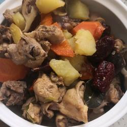 12.Add carrots, mushrooms, potatoes, prepared aniseed, salt, sugar, wolfberry, dates, hawthorn slices, etc., and simmer over medium heat for 30 minutes