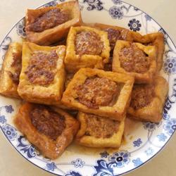 2.Meat Add oil, minced onion and ginger, eggs, chicken essence, oyster sauce, and soy sauce to the filling.Add the remaining tofu and mix well, just like making dumpling fillings