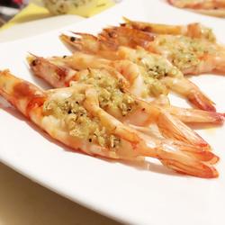 6. Place the diced garlic on the shrimp and dip it in some olive oil.Cover with tin foil.Put it in the oven and bake for 15-18 minutes at upper and lower heat, 150-180℃.