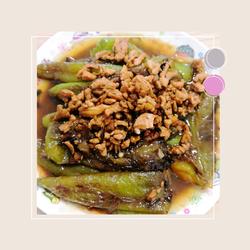 10.Put the fried green peppers into the pot and mix with the minced meat Stir well, add a little water and cover to reduce the juice