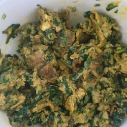 3.Put the chopped dandelion into the egg liquid and stir evenly