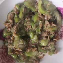 3.Add loofah and stir-fry for three minutes