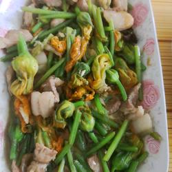 How to stir-fry black pork with pumpkin flowers