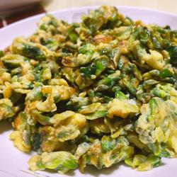 1. Add eggs, salt and MSG to Sophora japonica and mix well