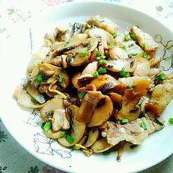 4.No cooking oil was added when frying the mushrooms because the pork belly had been fried before and there was oil left at the bottom of the pot.